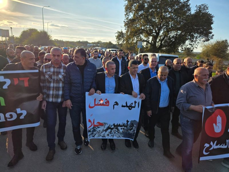 ورفع المشاركون في المظاهرة لافتات كُتب عليها: “لا لهدم البيوت العربية” و”البيت حق مش جريمة”، و”لا للعنف ..لا للجريمة.. لا لفوضى السلاح “.