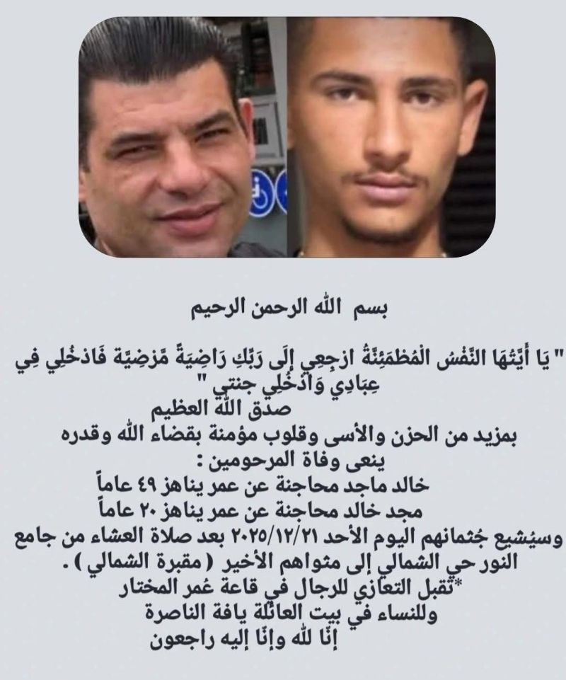 مساء اليوم جنازة ضحيتي جريمة القتل في الناصرة.. والمجلس المحلي في يافة الناصرة يصدر بيان استنكار