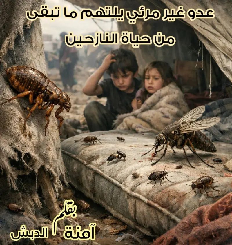 في واقعٍ يختلط فيه التعب بالخوف والألم تتسلل “أعداء الليل البراغيث” لتجد في الأغطية والفرش بيئةً مثالية للتكاثر والانتشار تلسع الأجساد الصغيرة وكبار السن الذين يعدون الفئة الأكثر هشاشة وتترك آثاراً مؤلمة وحكة مستمرة تضاعف من معاناة النازحين وتحرمهم من أبسط حقوقهم في الراحة إذ يتحول النوم إلى معركة ومهمة شبه مستحيلة خصوصاً للأطفال الذين يعانون من لسعات متكررة والتهابات جلدية وتؤكد أمهات أنهن يضطررن للبقاء مستيقظات معظم الليل في محاولة لحماية أطفالهن وسط غياب أي وسائل فعالة للمكافحة أو الوقاية.