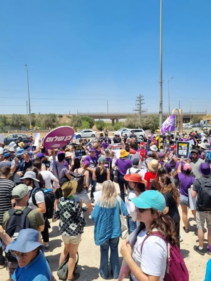 انطلقت ظهر اليوم الجمعة مظاهرة جماهيرية حاشدة عند مفترق “شاعر هنيغف” في النقب، بمشاركة مئات النشطاء، احتجاجًا على استمرار الحرب في غزة. وتعد هذه المظاهرة الأقرب إلى حدود القطاع منذ بدء الحرب في أكتوبر الماضي.