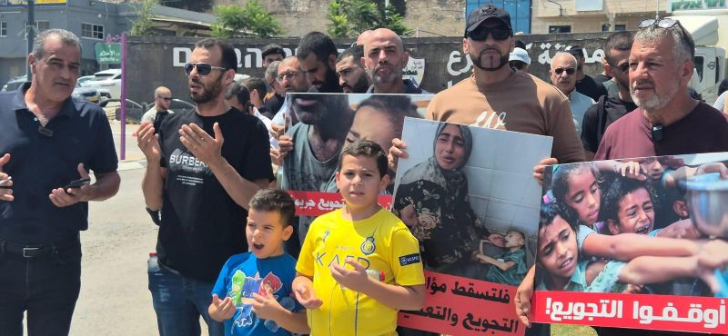 وفي كفر قرع، شارك العشرات من أهالي المدينة ومنطقة وادي عارة، في وقفة احتجاجية على الدوّار الأول في مدخل المدينة، وذلك رفضًا لحرب الإبادة الجماعية في قطاع غزة، وضد سياسة التجويع التي تنتهجها الحكومة الإسرائيلية في القطاع.