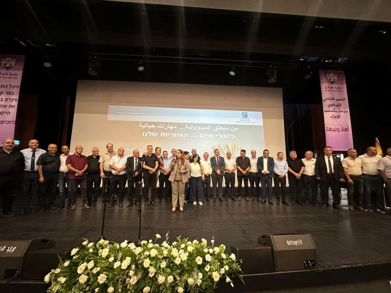 حلّت اليوم الأربعاء كوكبة من اسرة التفتيش والادارات التربوية في المجتمع العربي من اقصى الشمال حتى اقصى الجنوب ضيفة على بلدية كفر قرع والقصر الثقافي القرعاوي، الذي احتضن قرابة الخمسمائة مشاركة ومشارك والذين حضروا ليكونوا جزءً من حفل افتتاح العام الدراسي الجديد، بمشاركة المحامي فراس احمد بدحي رئيس بلدية كفر قرع، وزير التربية والتعليم السيد يوآف كيش، السيدة شيرين ناطور حافي، مديرة التعليم العربي في وزارة المعارف، السيد مازن غنايم رئيس اللجنة القطرية لرؤساء السلطات المحلية ورئيس مدينة سخنين، السيدة سينا زحالقة، مركزة التفتيش العربي في لواء حيفا ونخبة من رؤساء البلديات العربية، الى جانب شخصيات بارزة في ألوية وزارة المعارف المختلفة. كما برز حضور جوقات مدرسية مميزة بروعة تقديمها وابداعها.