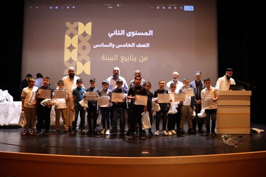 نظّمت هيئة الدعوة في أم الفحم حفلًا تكريميًا للمشاركين والفائزين في مسابقة “مِن يَنابِيعُ السنَّة” لحفظ الحديث النبوي الشريف، وذلك يوم الثلاثاء الثامن من ربيع الثاني 1447ه الموافق 30.09.2025م، في قاعة المركز الجماهيري في أم الفحم.