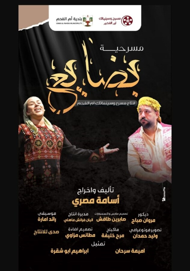 قدم العرض المسرحي”بضايع” على خشبة المسرح العربي أم الفحم وبدعم منه وأنتاجه/ الإثنين 10 نوفمبر/ترشرين الثاني 2025، اعداد وإخراج الفنان أسامة مصري، تشخيص، أميمة سرحان وإبراهيم اتبو شقرا، ديكور مروان صباح، تصميم ملابس واكسيسورات صاربين طافش، مدير إنتاج اليان فرانش ماهلي، موسيقى رائد امارة، تصوير فوتورغرافي وليد حمدان، مكياج مرح خليغة، تصميم غضاءة مطانس مزاوي.