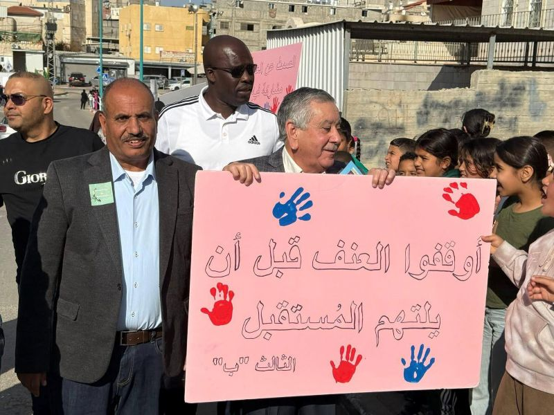 وجاء الشجار العنيف في رهط بعد ساعات قليلة من مشاركة عشرات آلاف الطلاب في سلسلة بشرية ضد العنف وجرائم القتل!
