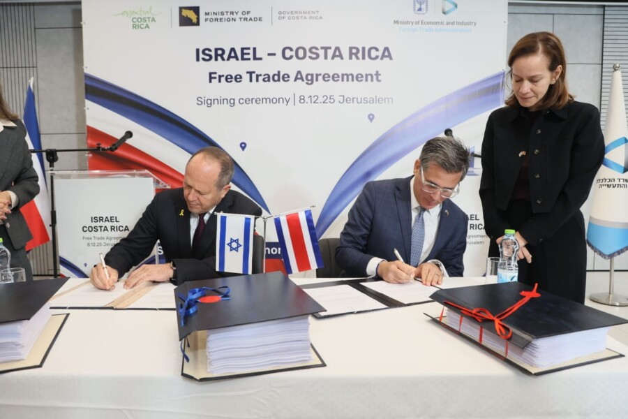 وقّعت إسرائيل وكوستاريكا اليوم اتفاقية شاملة للتجارة الحرّة، تُلغي فوراً أكثر من 90% من الرسوم الجمركية بين البلدين، وتفتح الباب أمام توسيع واسع للتبادل التجاري في السلع والخدمات. ويُتوقّع أن تسهم الاتفاقية في تعزيز الصادرات الإسرائيلية وخفض تكاليف الاستيراد، بما ينعكس على أسعار المنتجات للمستهلكين.