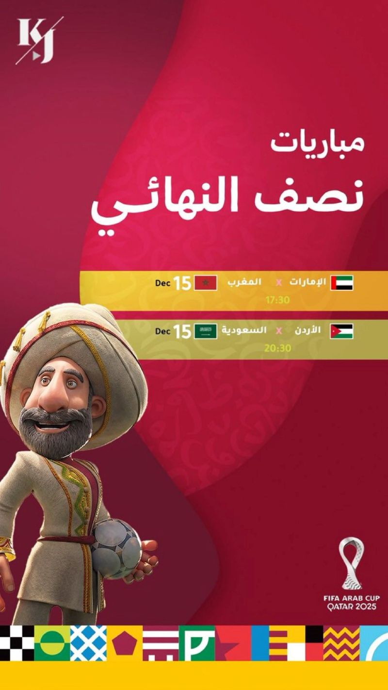 بلغت منتخبات الأردن والسعودية والمغرب والإمارات نصف نهائي بطولة كاس العرب لكرة القدم 2025 التي تقام حاليا في قطر وتستممر حتى 18 ديسمبر/كانون الأول الجاري.