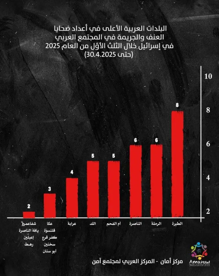 مركز أمان: للعام الثاني على التوالي أرقام قياسية في عدد ضحايا العنف العرب.. 89 ضحية خلال الثلث الأول من العام الجاري!