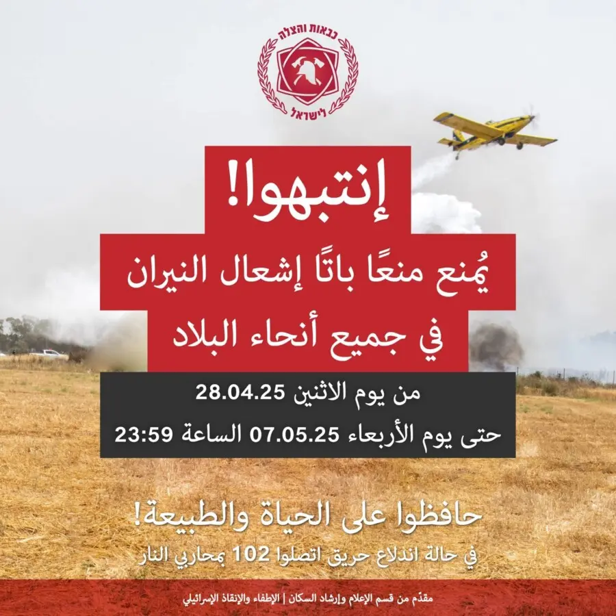 سلطة الإطفاء والإنقاذ: قرار بمنع إشعال النيران في جميع أنحاء البلاد