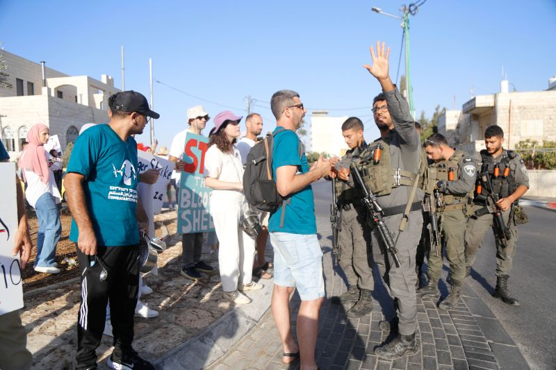 جنود يمنعون نشطاء سلام من اكمال وقفة احتجاجية في مدخل بيت جالا ضد التجويع وحرب الإبادة في غزة