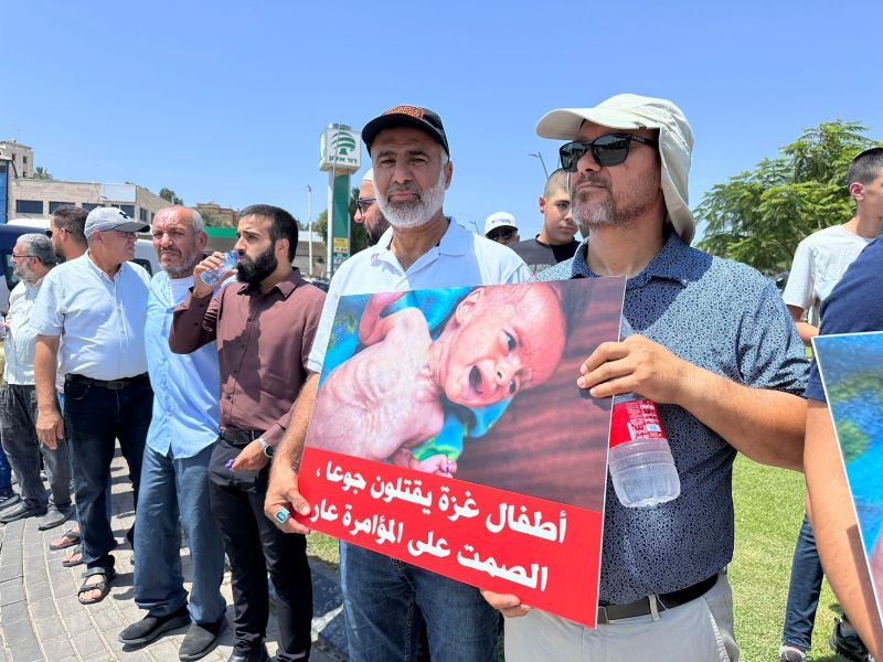 العشرات يشاركون بوقفتين احتجاجيتين في بلدتي أبو غوش وكفر قرع نديدًا بالحرب والتجويع بغزة
