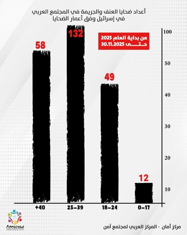 مركز أمان حول جرائم العنف: 251 ضحية حتى نهاية نوفمبر.. أعلى من الرقم القياسي السنوي لعام 2023 (247 ضحية)