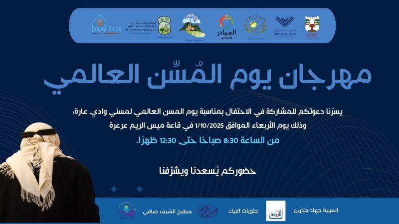 استمرار الاستعدادات لمهرجان كبير بمناسبة يوم المُسِّن العالمي: 1.10.2025 في قاعة ميس الريم بعرعرة