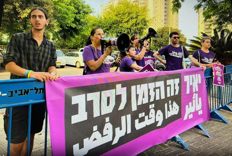 ناشطو “نقف معًا” يتظاهرون أمام منازل غانتس ولبيد وغولان ويطالبون بدعوة الجنود لرفض أوامر احتلال
