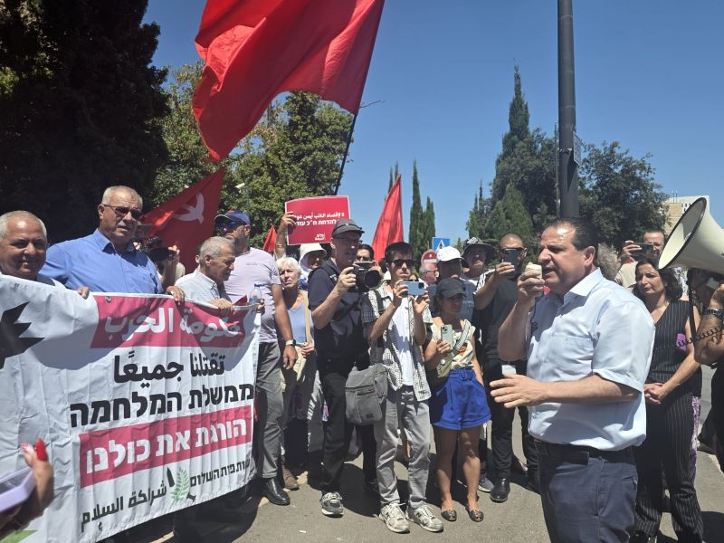 مظاهرة عربية-يهودية حاشدة امام الكنيست رفضًا لقرار لجنة عزل النائب أيمن عودة
