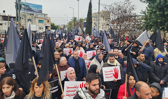 مشاركة جماهيرية واسعة بالمظاهرة القطرية في سخنين ضد الجريمة وتواطؤ الشرطة