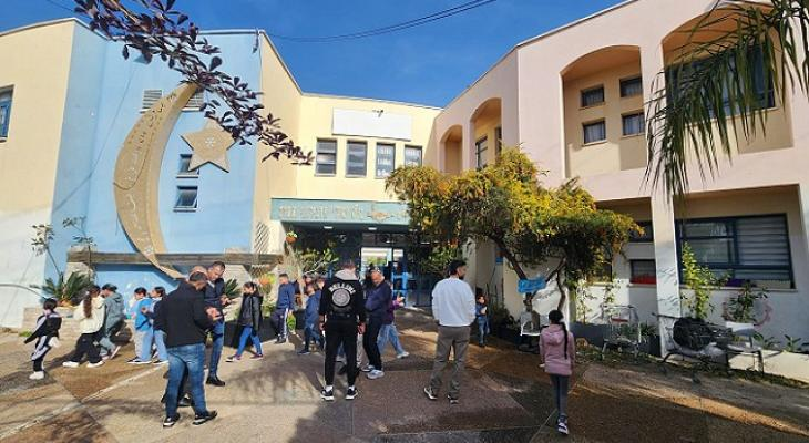 تظاهرة للاهالي في طمرة احتجاجًا على إطلاق نار أمام مدرسة البيروني الابتدائية