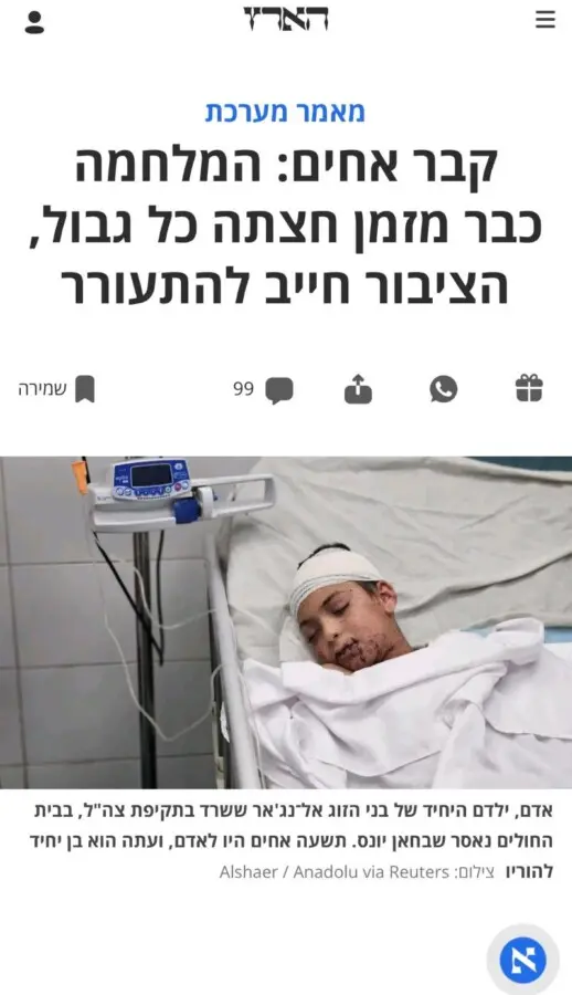 “هآرتس”.. قبور جماعية: الحرب تجاوزت كل الحدود، وعلى الجمهور أن يصحو!